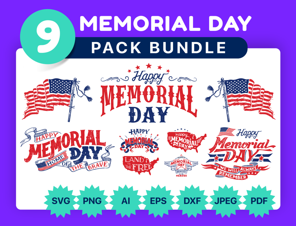 With over 9 meticulously crafted vectors, this bundle offers a wide range of Memorial Day-themed designs that capture the essence of this important occasion. Each vector is designed to evoke honor, gratitude, and unity, from American flags and military insignias to poignant symbols of remembrance.